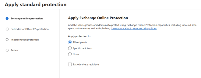 first is the "Preset Security Policies" - I have added all reciepients to the standard policy as its the most balanced