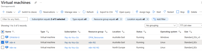 - You can click on the VM to drill down further and also connect to the VM (Linux will only allow you SSH access)