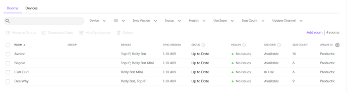 Once logged in you will see all our rooms in the link https://sync.logitech.com/inventory/